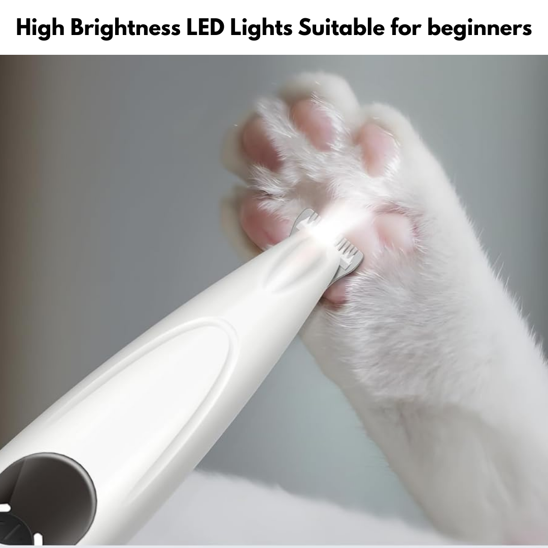 Designed with an integrated LED light at its tip, offering improved visibility for finer details. High brightness LED light can safely and clearly trim the pet's hair in fine areas, avoid over-trimming and minimize the damage to your pet.